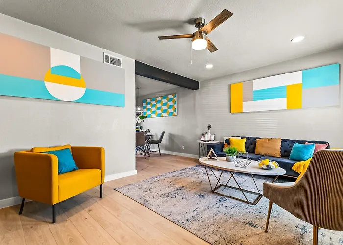 Disfruta de tus vacaciones en Irving en Apartamento Stylish & Comfy Downtown Gem Irving Parking. Ideal para quienes buscan una experiencia auténtica, está situado a 10 minutos en coche de West Irving Aquatic Center y a una distancia de 2 km de la Fritz Park.